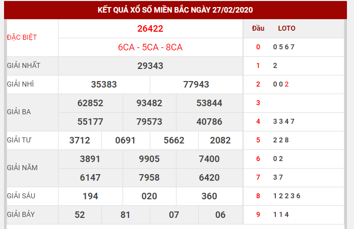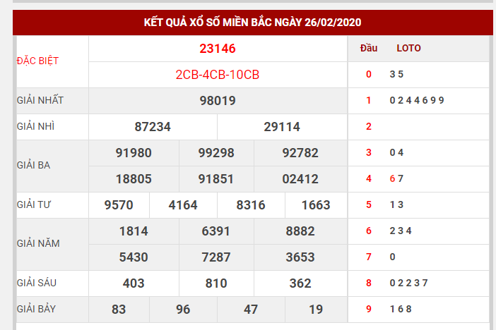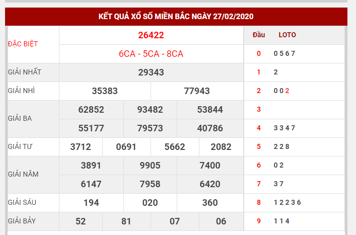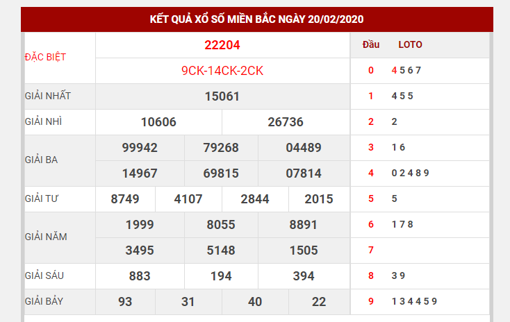 Ví dụ: Kết quả xổ số ngày 20/2 về 22204