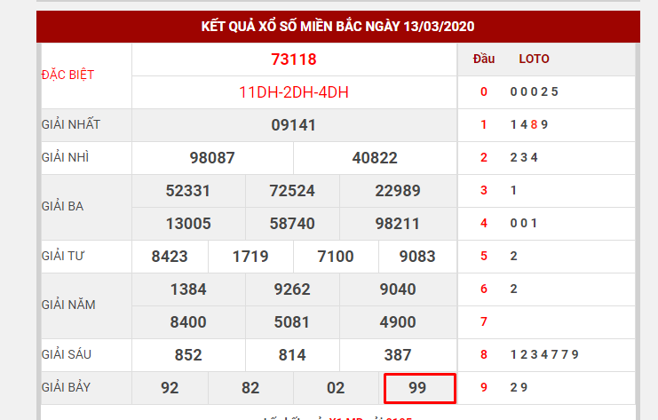 Ví dụ: Ngày 13/3 giải 7 có lô kép là 99. Ta sẽ đánh bộ đề kép bằng, kép lệch trong 7 ngày.