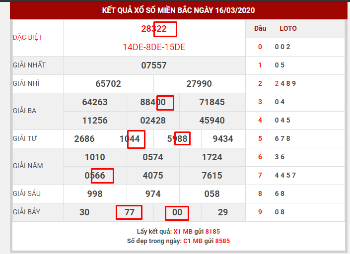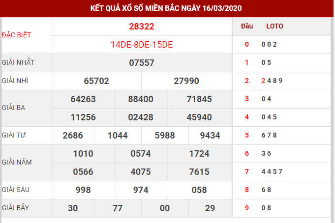 Kết quả đến ngày 16/3 nổ cả lô cả đề kép